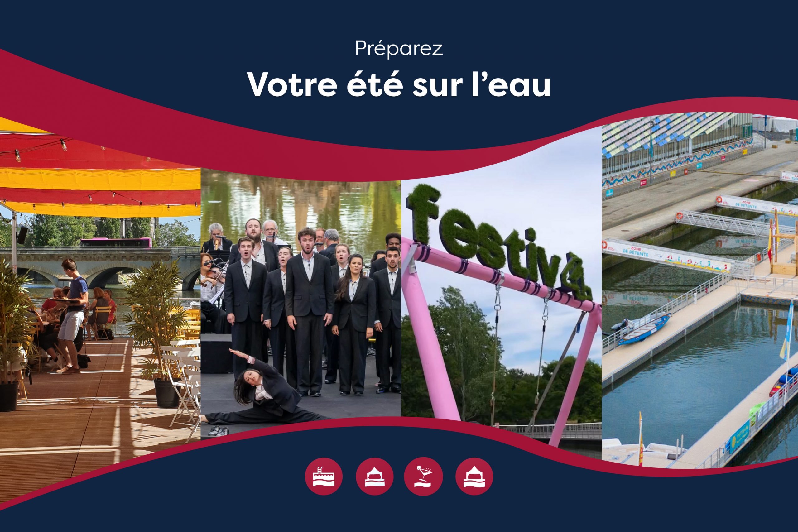 Terrasse flottante, scène sur l’eau, piscine estivale ou événement signature : l’eau devient un véritable outil d’attractivité.